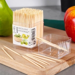Grootverpakking voor thuis, feestjes en horeca. Het afsluitbare doosje houdt de tandenstokers schoon en geordend.