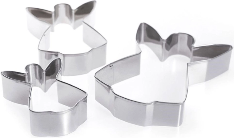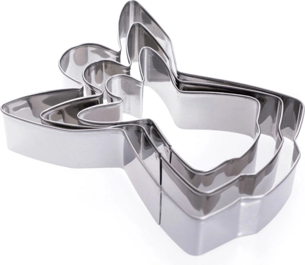 Maak perfect gevormde kerstkoekjes met de praktische set engeluitstekers. Drie afmetingen maken het mogelijk een effectvolle mix van maten te bereiden voor peperkoek, koekjes en fondantdecoraties. Duurzaam roestvrij staal garandeert nauwkeurig uitsteken en een lange levensduur bij regelmatig gebruik.