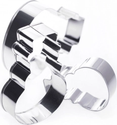 Je gebruikt ze niet alleen voor koek- en peperkoekdeeg, maar ook voor fondant, linzendeeg, brood, sandwiches, gelei, kaas of zacht fruit. De gladde randen steken strakke en nauwkeurige vormen uit en de vormpjes passen praktisch in elkaar, zodat ze ruimte besparen in de lade. Na gebruik gaan ze eenvoudig in de vaatwasser.