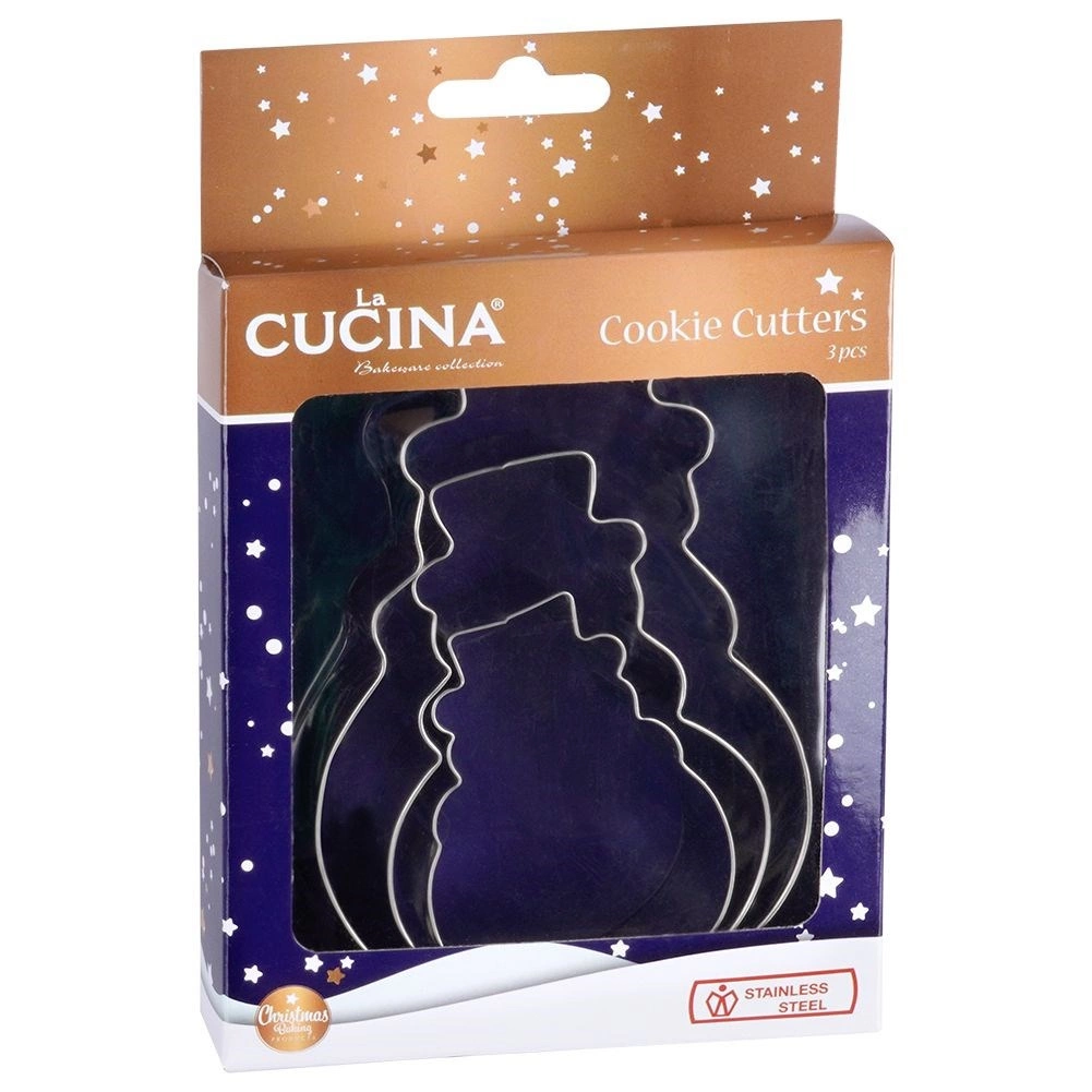De set bevat een grote, middelgrote en kleine sneeuwpop-uitsteker – ideaal voor koekjessets, gelaagde decoraties en verschillende soorten deeg.