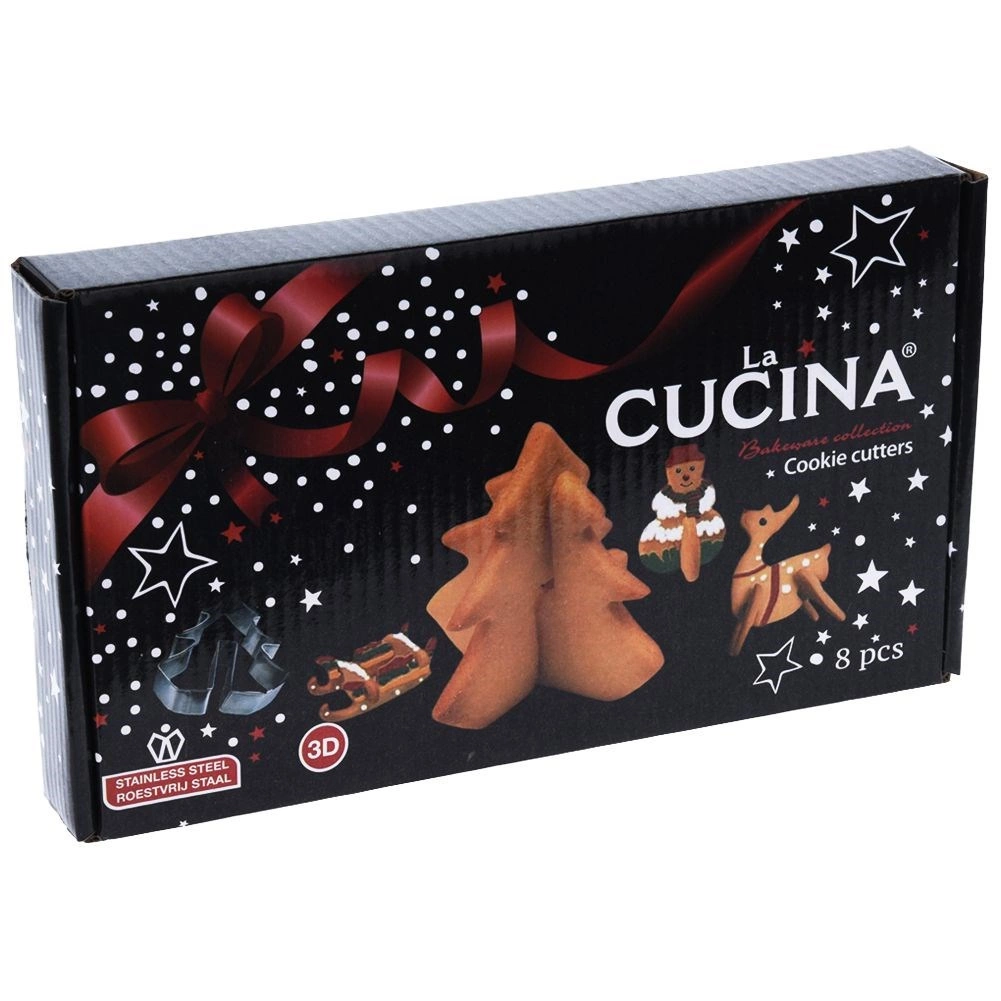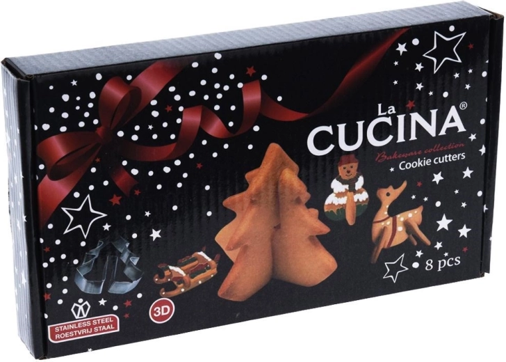 Ontdek de magie van feestelijk bakken met een set die klassiek deeg verandert in staande 3D-decoraties. Uitstekers van hoogwaardig roestvrij staal snijden eenvoudig precieze onderdelen die na het bakken in elkaar passen en opvallende kerstmotieven vormen. De afgewerkte koekjes kun je bovendien aan de rand van een mok hangen voor een stijlvolle serveerwijze bij thee of koffie.