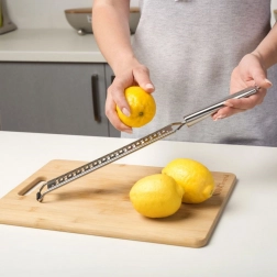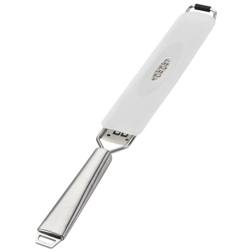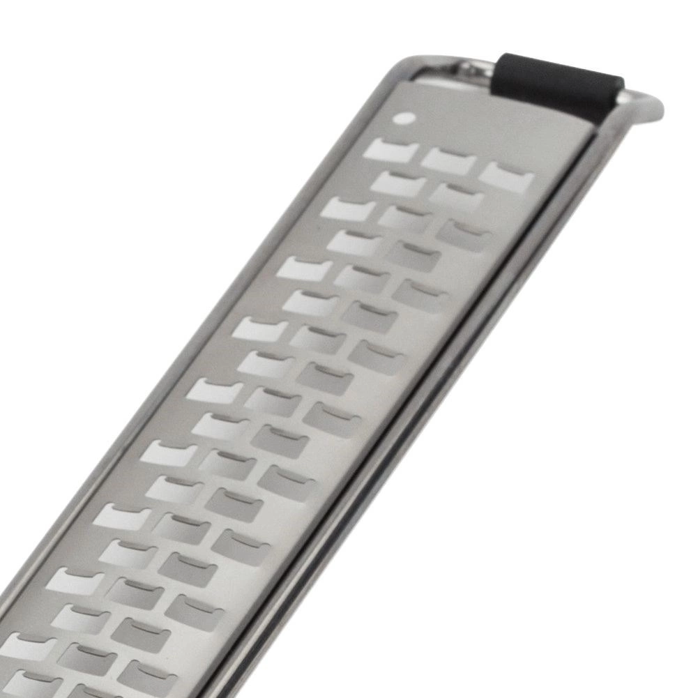 Scherpe, fijne tandjes van roestvrij staal 304 zorgen voor snel en gelijkmatig raspen van citruszeste, harde kazen en chocolade.