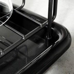 Onderdeel is een uitneembare bestekhouder met twee compartimenten, die je naar wens aan de binnenkant van het rek of aan de buitenzijde kunt plaatsen. De minimalistische uitstraling en tijdloze zwarte kleur passen bij klassieke, moderne en industriële interieurs.