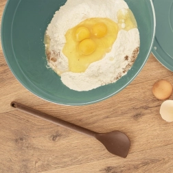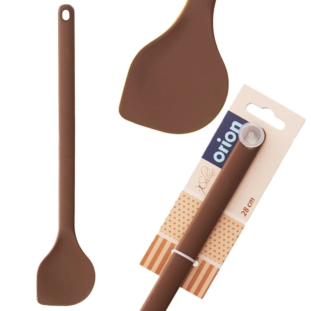 Deze bruine siliconen keukenspatel is een betrouwbare hulp voor roeren, uitspreiden, omdraaien en serveren. Hoogwaardig siliconen met interne metalen versteviging biedt de ideale combinatie van stabiliteit en flexibiliteit, zodat je eenvoudig kommen en pannen bereikt zonder het oppervlak te krassen.