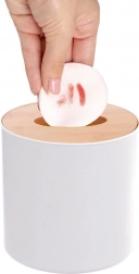 De bak is makkelijk schoon te maken en duurzaam, het deksel is afneembaar voor comfortabel legen en beperkt geuroverdracht. Ideaal voor wattenschijfjes, wattenstaafjes, kleine verpakkingen en ander cosmetisch of kantoora fval.