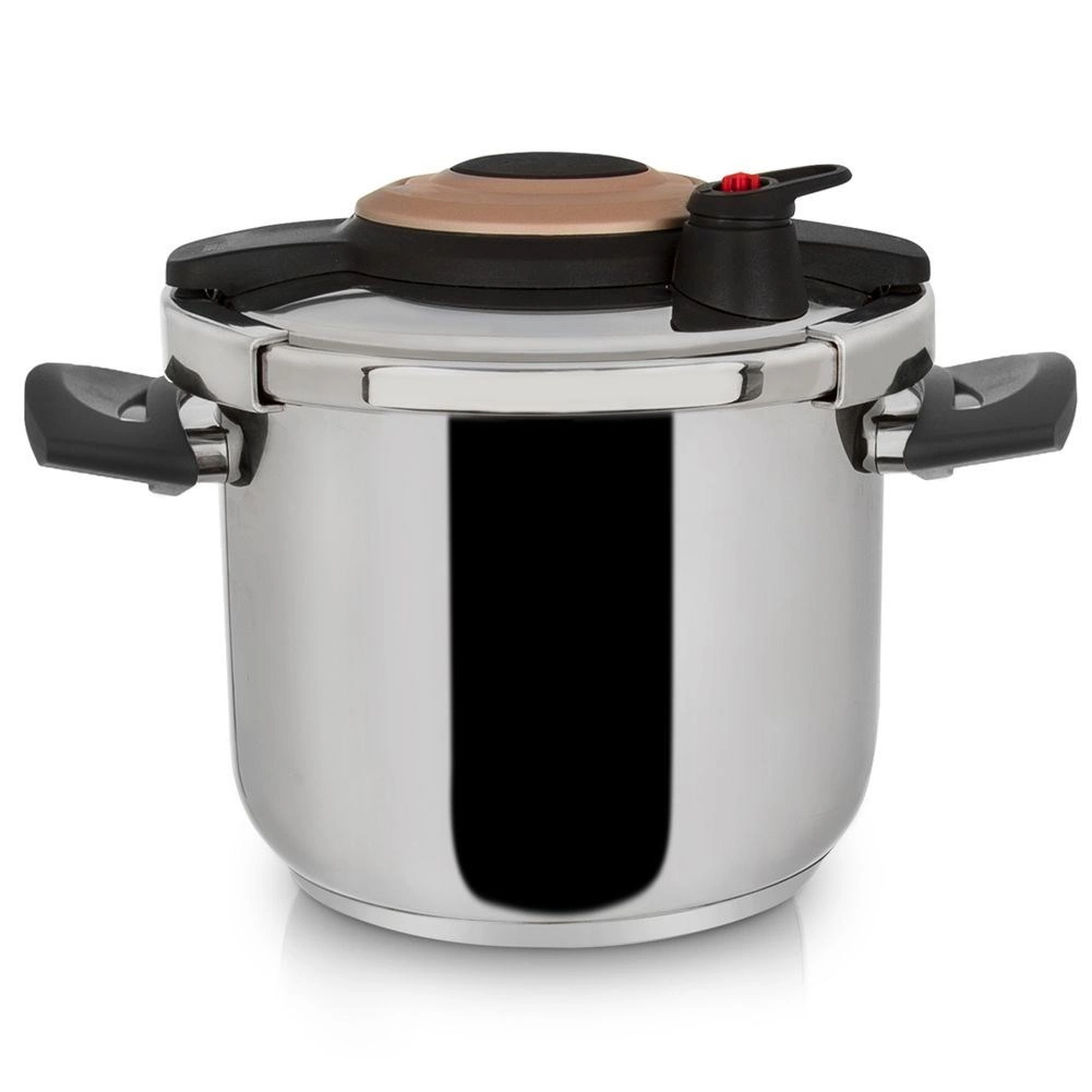 De meerlaagse akuthermische bodem slaat warmte uitstekend op en verdeelt deze gelijkmatig, wat energie en tijd bespaart. Beschikbaar met 3-traps regeling van stoomafvoer voor precieze drukcontrole. Compatibel met alle soorten kookplaten: gas, elektrisch, keramisch, halogeen en inductie.
