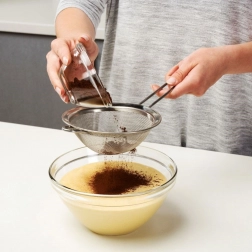 Het dicht geweven gaas verwijdert effectief klontjes uit bloem, cacao of suiker en garandeert glad deeg en heldere bouillons zonder onzuiverheden.