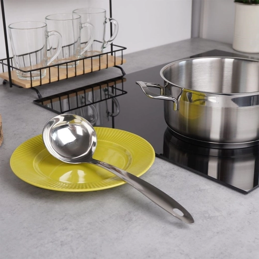De diepe, ronde lepel met een inhoud van 80 ml maakt comfortabel en precies opscheppen van soepen, sauzen en goulash mogelijk zonder onnodig druppelen.