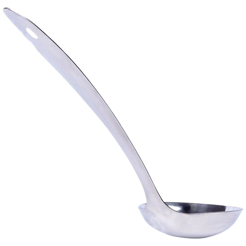 De universele roestvrijstalen soeplepel is een onmisbare hulp voor dagelijks koken en serveren. De inhoud van 80 ml maakt het mogelijk om porties soep, saus, compote of goulash nauwkeurig te doseren. De lange handgreep houdt de handen op een veilige afstand van hete vloeistoffen, terwijl het ophangoog het opbergen aan een keukenreling vergemakkelijkt.
