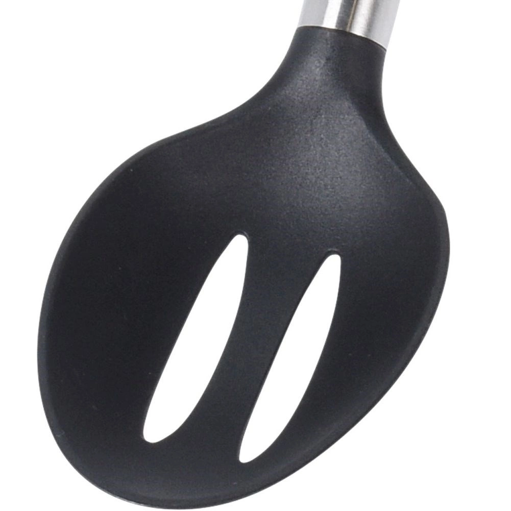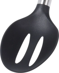 Hoogwaardig, stijf nylon is krasbestendig en geschikt voor antiaanbakoppervlakken. De openingen voeren vloeistoffen betrouwbaar af tijdens het serveren.