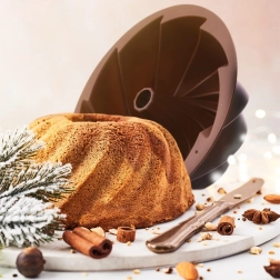 Het spiraalvormige bloemenreliëf creëert een aantrekkelijke dessertvorm voor elke gelegenheid – licht bestuiven met poedersuiker of overgieten met glazuur is genoeg.