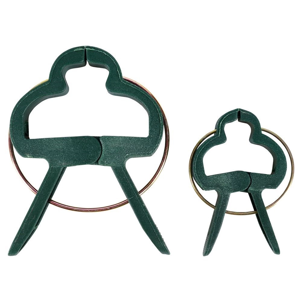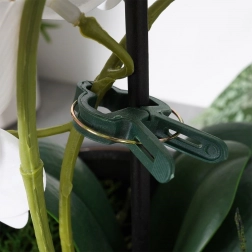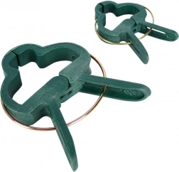 Het veermechanisme met geribbelde bekken houdt stevig vast zonder de plant te beschadigen. Ideaal om aan stokken en steunen te klemmen.