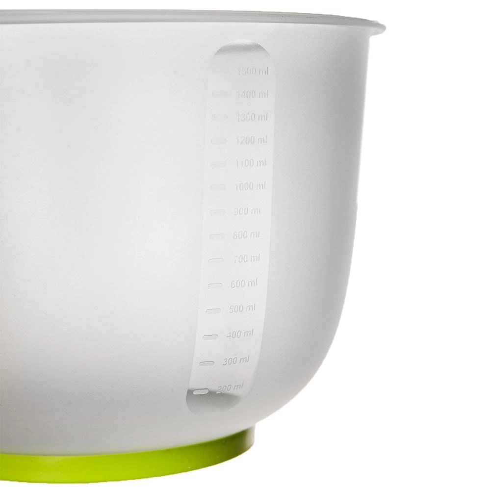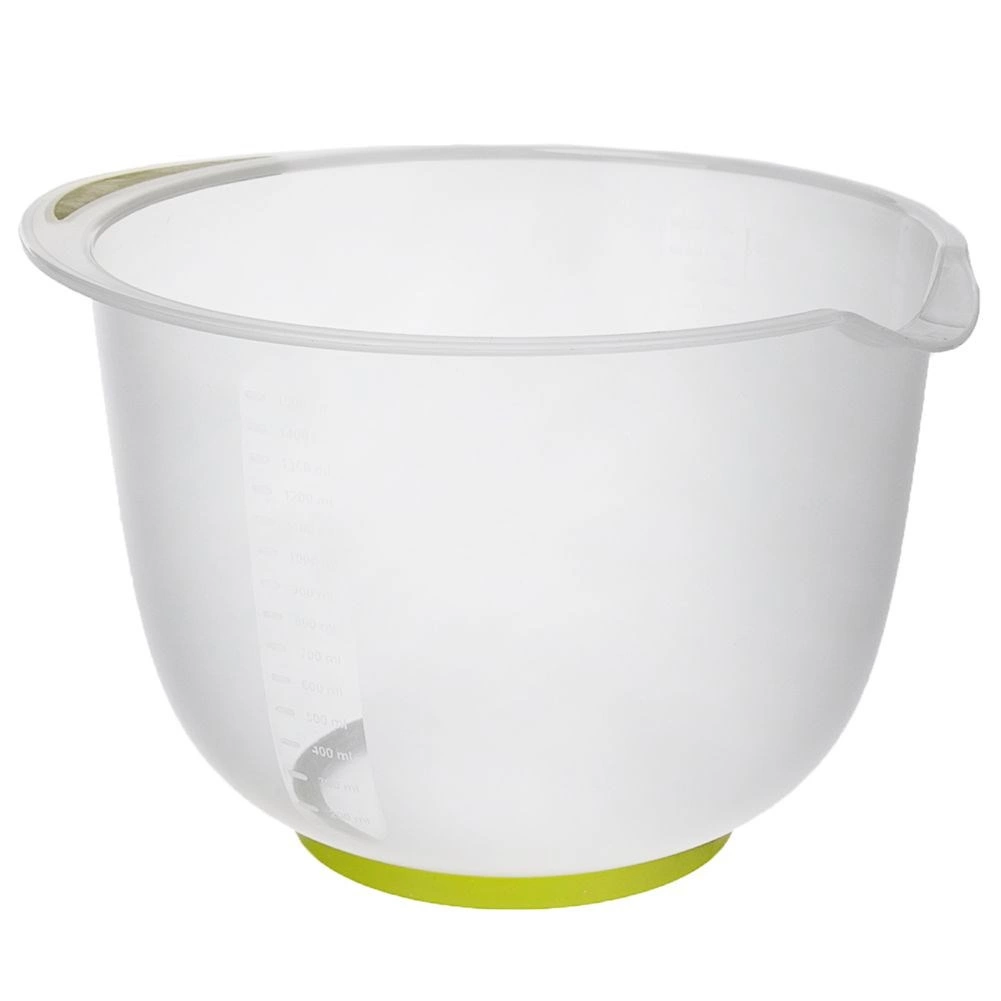 De praktische schenktuit en zijhandgreep zorgen voor gemakkelijk en schoon overschenken van beslag en sauzen. De anti-slip rubberen bodem houdt de kom stabiel op zijn plaats, wat je ook roert. Het materiaal is veilig voor contact met levensmiddelen, bestand tegen temperaturen van -25 °C tot 95 °C en kan in de vaatwasser en in de magnetron worden gebruikt.
