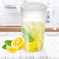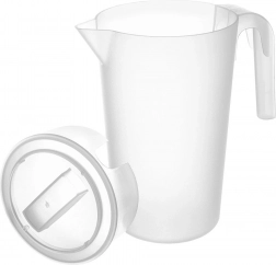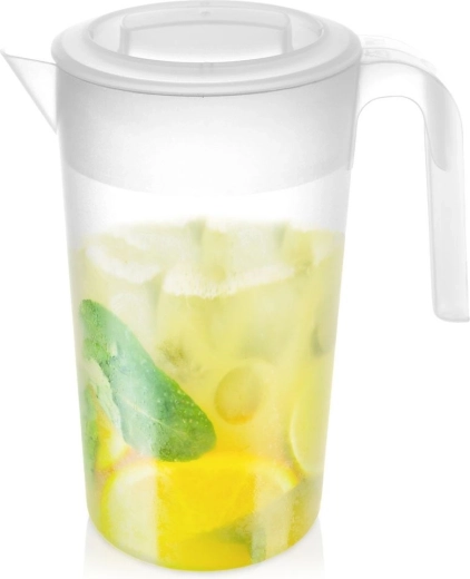 Universele kan van duurzaam kunststof in een heldere uitvoering, perfect voor water, sappen, huisgemaakte limonade, ijsthee en compote. Dankzij het ergonomische handvat en de precies gevormde schenktuit schenk je soepel en druppelvrij, terwijl het deksel de drank beschermt tegen vuil en insecten – zowel thuis als in de tuin.