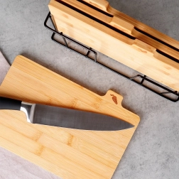 Bamboe is een hard, vormvast materiaal dat geen geuren opneemt en snel droogt. Het is vriendelijk voor messen en geschikt voor dagelijks gebruik.