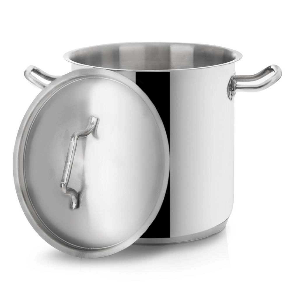 Deze massieve roestvrijstalen pan met deksel is een uitstekende keuze voor soepen, sauzen en gestoofde gerechten. Hoogwaardig staal 304 (18/10) garandeert een lange levensduur, corrosiebestendigheid en eenvoudig onderhoud. Het gepolijste binnen- en buitenoppervlak zorgt voor een elegante uitstraling en maakt reinigen makkelijker.