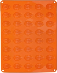Deze hoogwaardige siliconen bakvorm in oranje is ideaal voor het maken van krokante koekjes in de iconische nootjesvorm. Dankzij het antiaanbakoppervlak haal je het deeg er gemakkelijk uit zonder invetten of met bloem te bestuiven. De vorm is licht, compact op te bergen en geleidt de warmte uitstekend, zodat je een gelijkmatige garing bereikt.