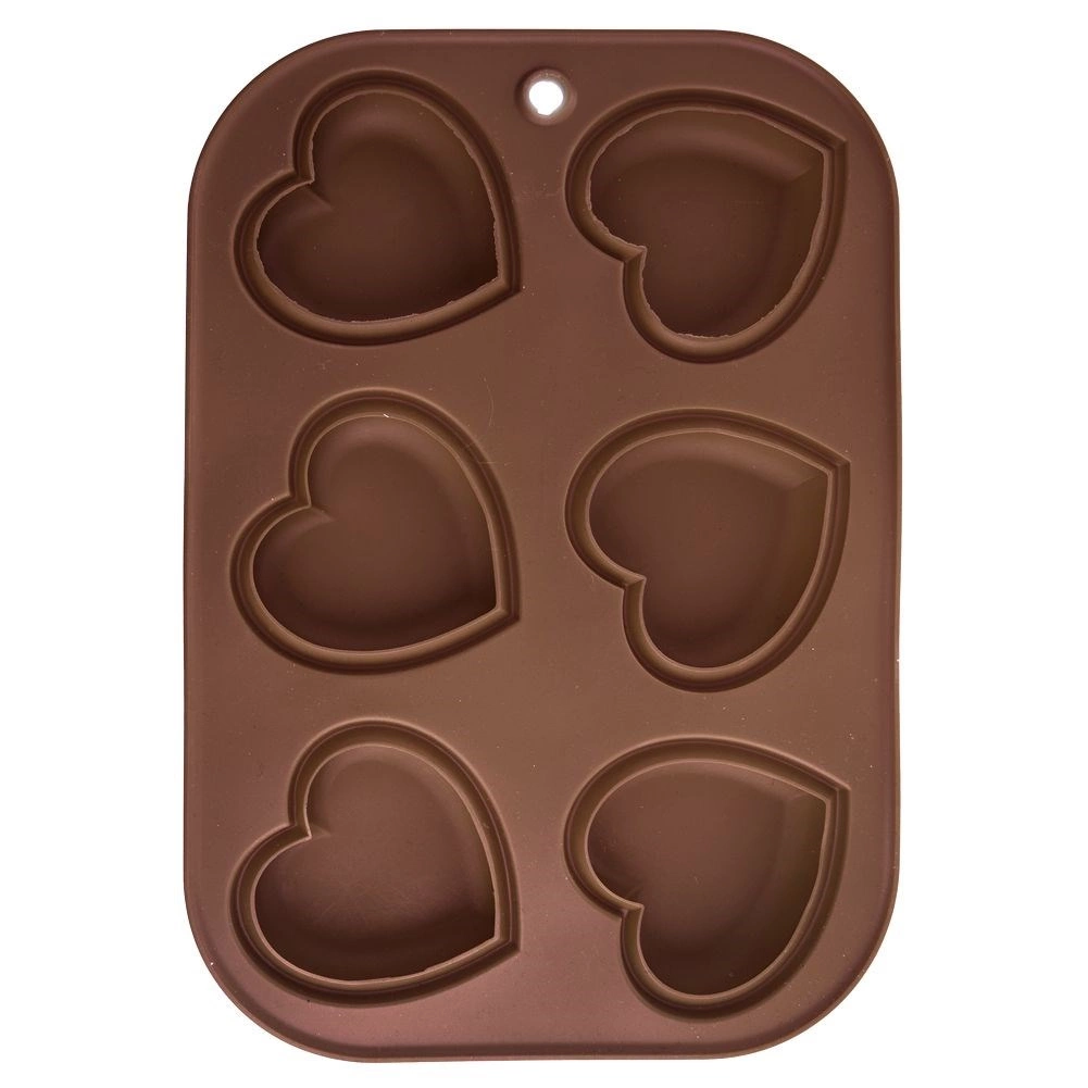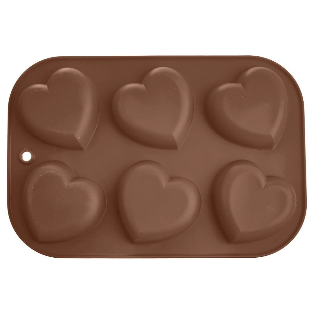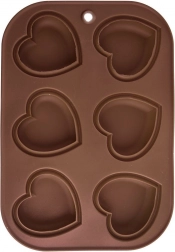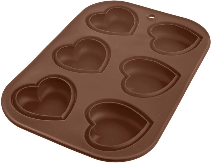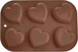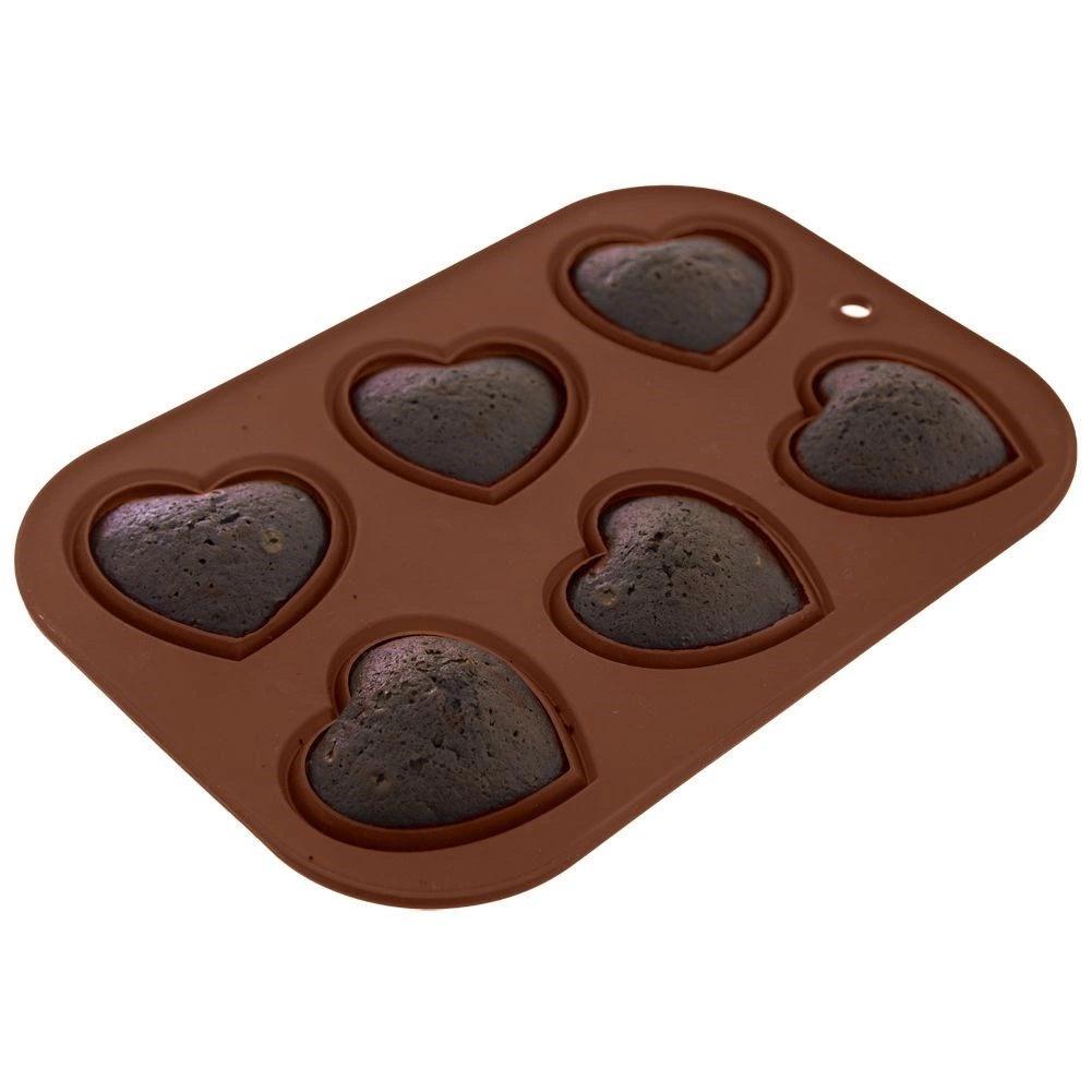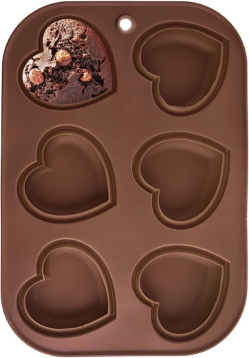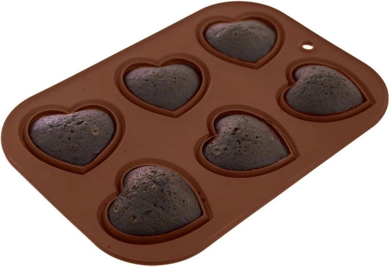 Deze rechthoekige siliconen vorm in bruine kleur is ideaal voor het bereiden van hartvormige muffins, desserts en ook chocolaatjes. Dankzij het anti-aanbakoppervlak is invetten niet nodig, het beslag bakt niet aan en je haalt de lekkernijen er eenvoudig uit.