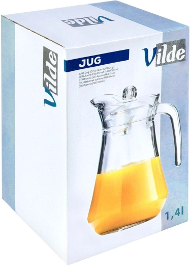 Elegante glazen kan met een inhoud van 1,4 l, met een praktisch deksel en ergonomisch handvat voor comfortabel schenken. Ideaal voor water, sappen, limonade of ijsthee. Dankzij de gevormde schenktuit giet je zonder te knoeien, en het deksel beschermt de drank tegen vuil en insecten. Geschikt voor vaatwasser en koelkast, voor dranken tot 60 °C.