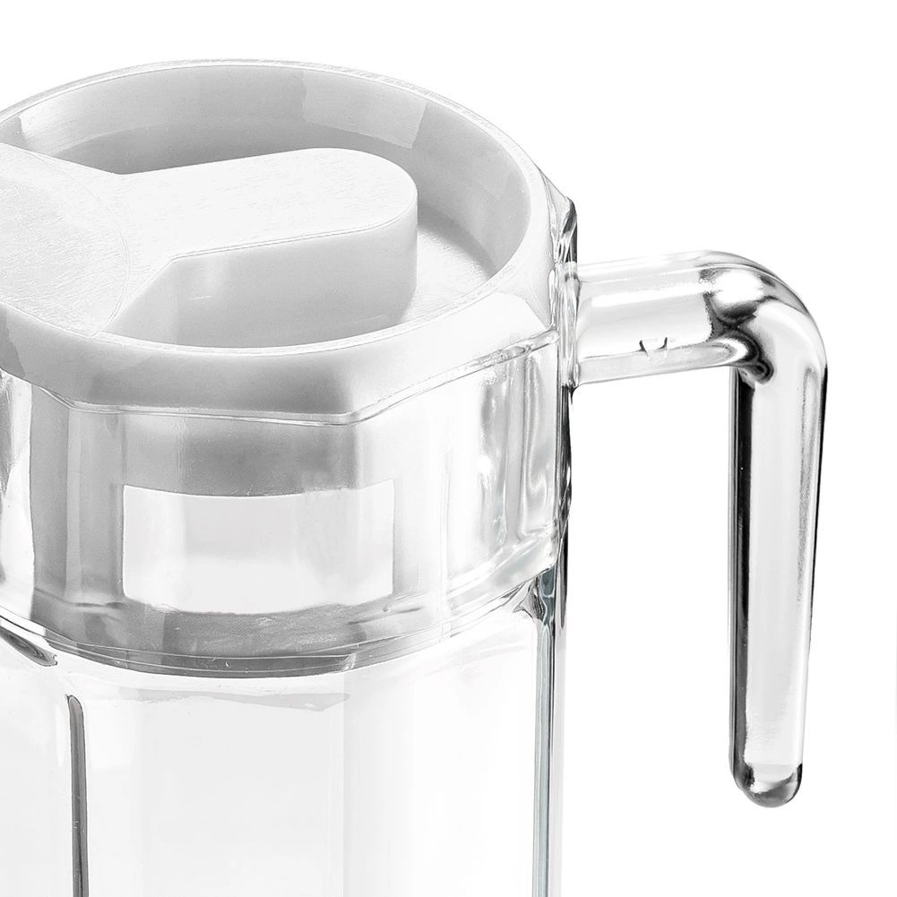 Het praktische deksel van duurzaam kunststof beschermt de drank tegen insecten en stof, terwijl het ergonomische handvat en de gevormde schenktuit zorgen voor comfortabel en precies schenken zonder druppels. De karaf kan in de vaatwasser en in de koelkast worden bewaard. Geschikt voor dranken tot 60 °C; zonder deksel is kort opwarmen in de magnetron mogelijk tot een temperatuur lager dan 60 °C.