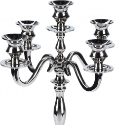Deze vijfarmige kandelaar in tijdloos design is gemaakt van duurzaam metaal met een hoogglans zilverkleurige afwerking. Hij komt prachtig tot zijn recht als middelpunt op de eettafel, op een dressoir of schouw en verandert elke avond in een stijlvolle, romantische sfeer.