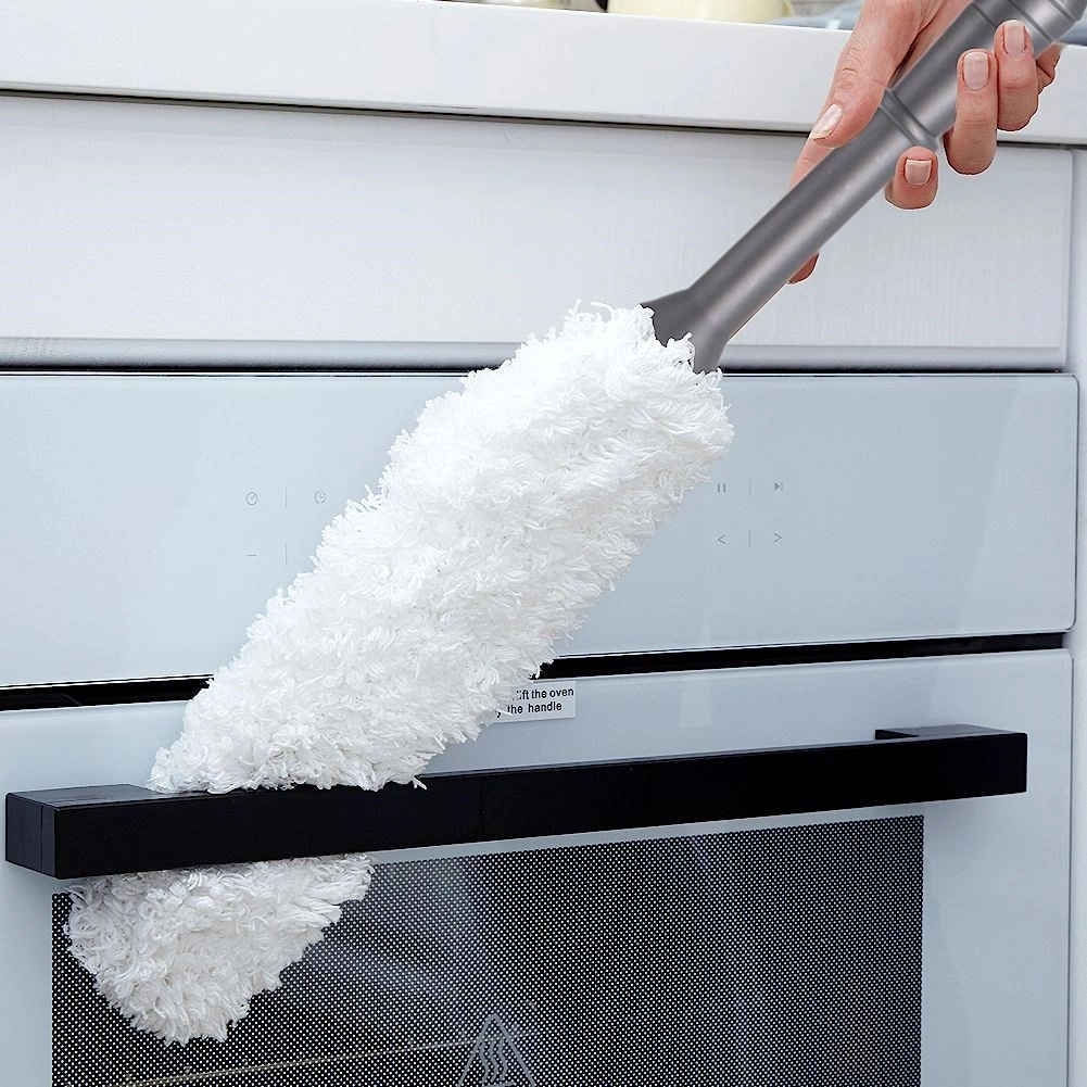 De antistatische microvezelstofdoek is een geweldige hulp voor snel schoonmaken zonder chemicaliën. De dichte en zachte vezels trekken stof aan en sluiten het in, zonder vuil in de lucht te laten wervelen. Dankzij de verlengde handgreep bereik je gemakkelijk planken, jaloezieën, radiatoren en smalle ruimtes rond apparaten.