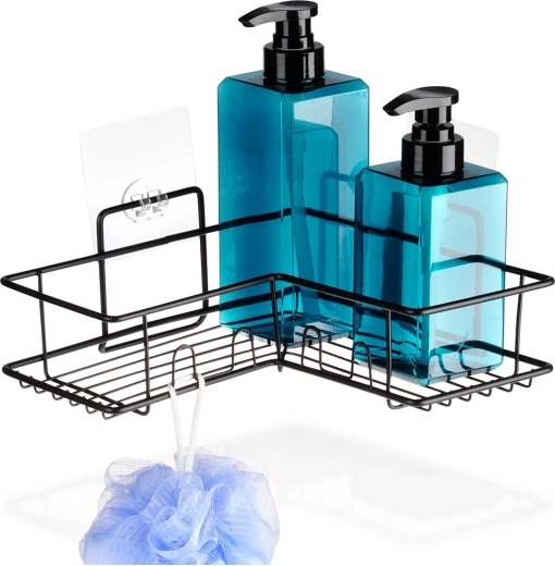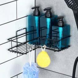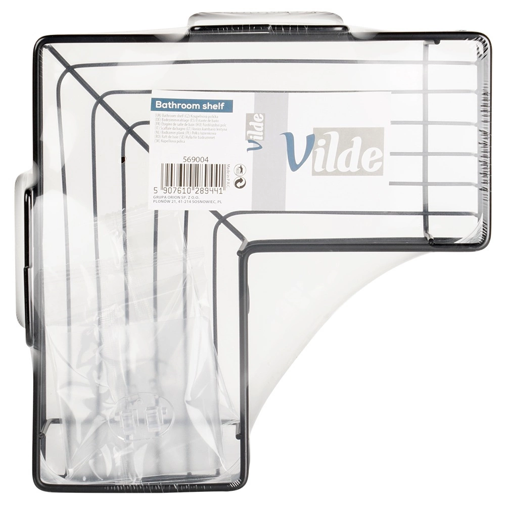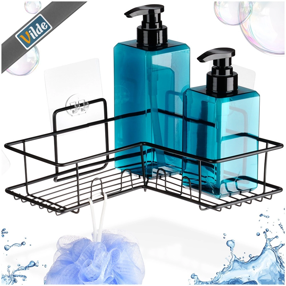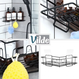 De Vilde hoek-doucheplank benut de ruimte in de hoek efficiënt en houdt je shampoos, zeep en sponsjes altijd binnen handbereik. De metalen constructie met zwarte poedercoating is bestand tegen corrosie en past perfect bij een moderne badkamer. Het open draaddesign zorgt voor snelle afwatering en een schoon, hygiënisch milieu.