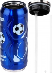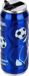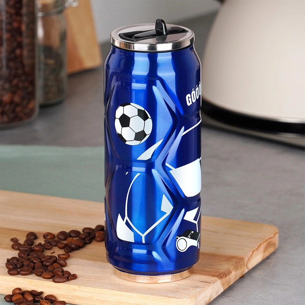 Geniet van je favoriete drankjes in een moderne thermosbeker in blikvorm met een opvallend voetbalmotief op een blauwe achtergrond. Hoogwaardig roestvrij staal aan de buiten- en binnenzijde garandeert duurzaamheid en een pure smaak zonder ongewenste geurtjes. Vacuümisolatie houdt warme dranken tot 12 uur warm en koude tot 8 uur koud – ideaal voor reizen, kantoor en sport.