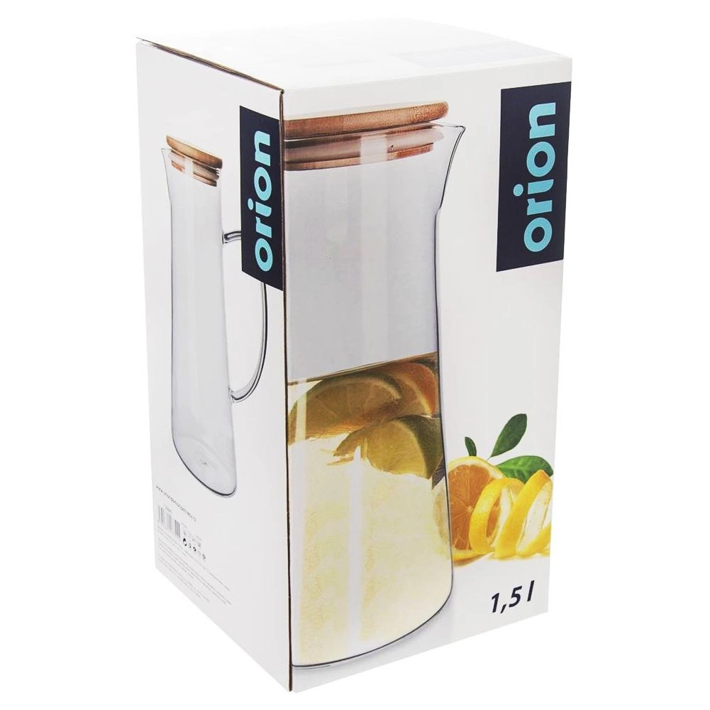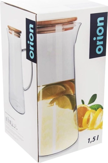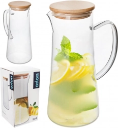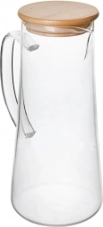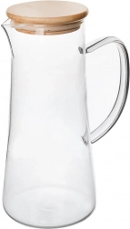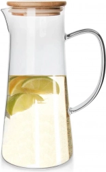 Stijlvolle kan met een inhoud van 1,35 l, gemaakt van duurzaam borosilicaatglas dat temperaturen van 20 °C tot 230 °C aankan. Uitgerust met een natuurlijk bamboe deksel met siliconen afdichting, houdt hij dranken langer vers en beschermd tegen vuil en insecten. Het ergonomische handvat en de gevormde tuit zorgen voor veilig en precies schenken zonder druppelen.