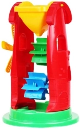 Stimuleer de creativiteit van uw kinderen met deze levendig gekleurde molen voor zand en water. Deze functionele molen maakt het mogelijk om zand te strooien of water in het bovenste gedeelte te gieten en te observeren hoe de wielen draaien, wat een grote bron van plezier voor kinderen is.