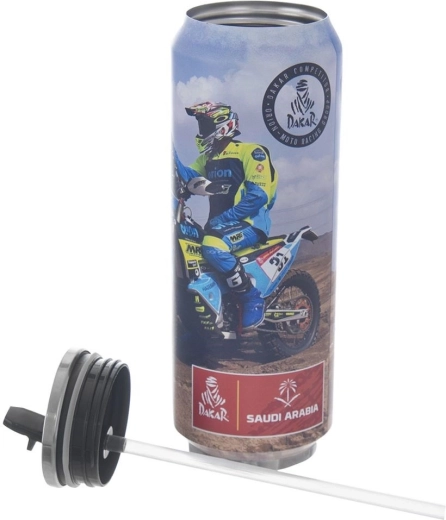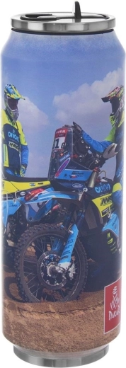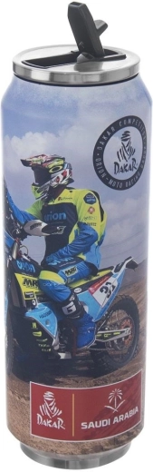 Stijlvolle thermobeker in de vorm van een blikje met een inhoud van 700 ml houdt je dranken langer op de ideale temperatuur dankzij de dubbele wand met vacuümisolatie. Gemaakt van roestvrij staal, met een lekdichte sluiting en een praktisch drinktuitje met rietje, zodat je niet hoeft te kantelen tijdens het drinken. Geschikt voor warm en koud, met een aantrekkelijk DAKAR-motief.
