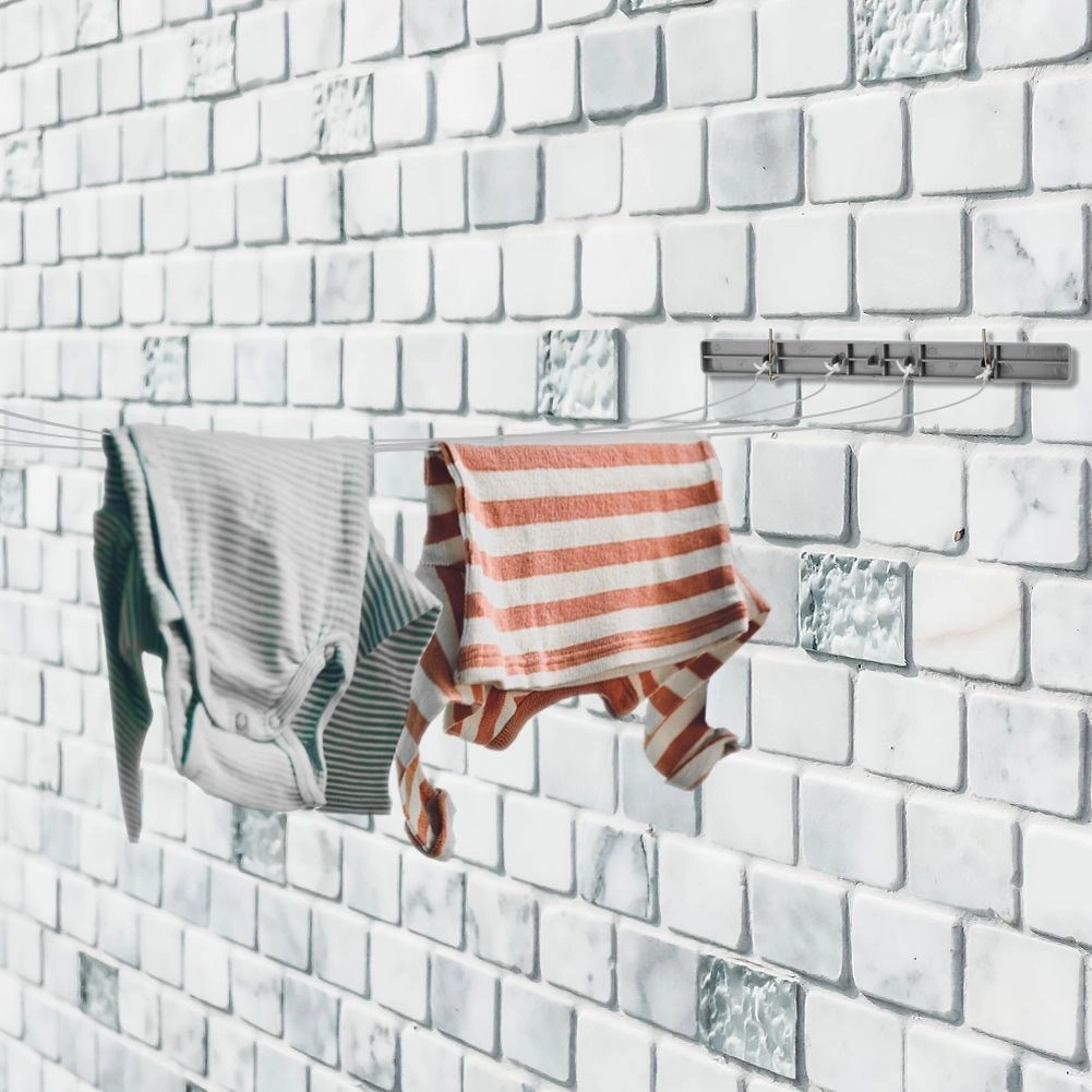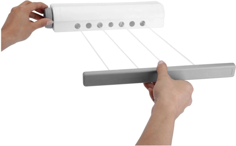 De installatie is snel en eenvoudig – bevestig hem op tegenoverliggende muren met een afstand tot circa 360 cm. In ingeschoven toestand neemt hij minimaal ruimte in en behoudt hij een nette uitstraling van het interieur. Perfect voor de badkamer, wasruimte of droogruimte.