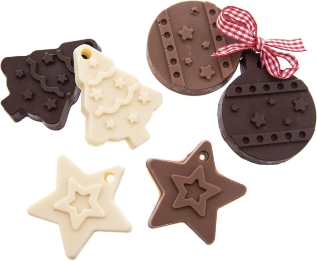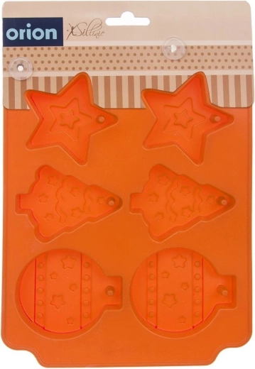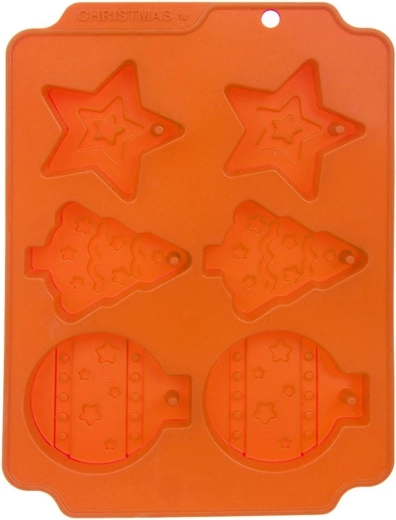 Zes vormpjes in de vormen van een sterretje, boompje en kerstbal met decoratief reliëf voor een perfect feestelijke uitstraling.
