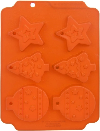 Met de siliconen kerstvorm bak je tot 6 lekkernijen in de vormen van een sterretje, boompje en kerstbal. De vorm is flexibel, antiaanbak en bestand tegen temperaturen van -40 °C tot +220 °C, waardoor hij geschikt is voor de oven, magnetron en vriezer. Dankzij de gaatjes kun je de koekjes aan de kerstboom hangen en de vorm is eenvoudig schoon te maken, ook in de vaatwasser.