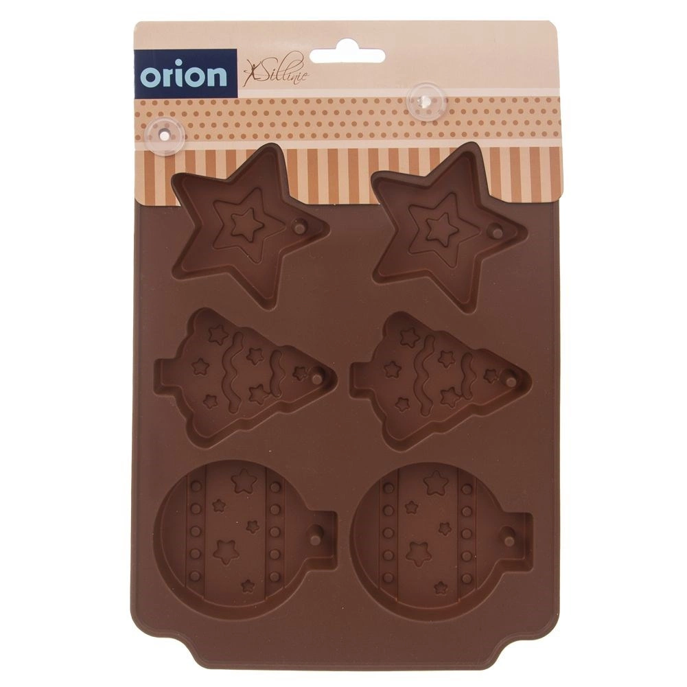 Deze bruine siliconen kerstvorm is ideaal voor het bakken van koekjes en peperkoek of het maken van chocolaatjes en pralines. Zes holtes in drie populaire vormen – ster, boom en bal – maken spectaculaire zoetigheden met reliëf en een gaatje om in de boom te hangen. Flexibel en anti-aanbak siliconen zorgt voor makkelijk uitnemen zonder invetten.
