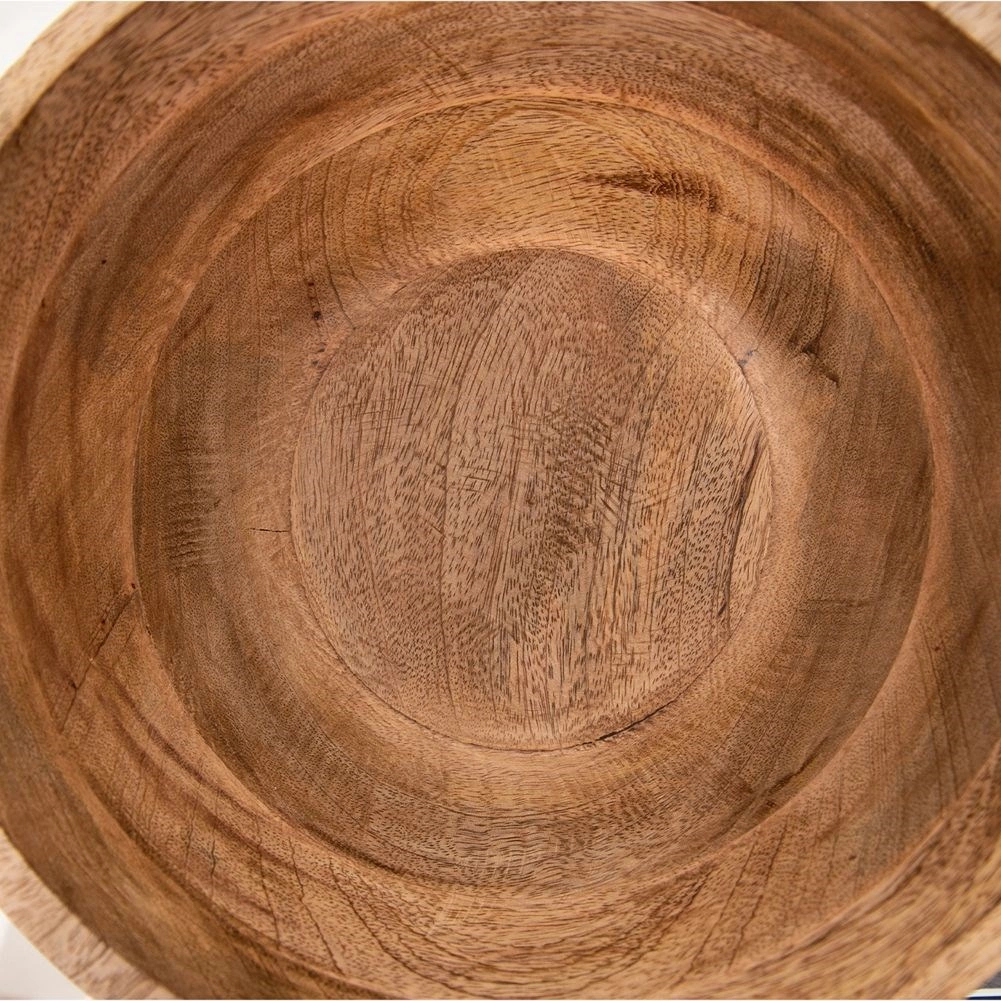 Decoratieve gebleekte groeven en de warme tint van mangohout maken van de kom een functioneel én esthetisch tafelaccessoire.