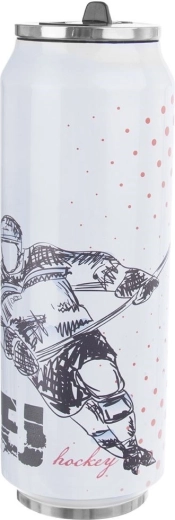 Elegante reis-thermobeker geïnspireerd op de vorm van een blikje, combineert modern design met maximale functionaliteit. De binnen- en buitenkant van duurzaam roestvrij staal en de vacuümisolatie zorgen voor betrouwbare temperatuurbehoud – warme dranken tot 12 uur, koude ongeveer 8 uur. De witte uitvoering met HOKEY-grafiek van een speler valt direct op.
