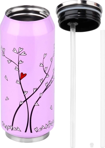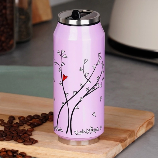 Ontdek de combinatie van design en functionaliteit. Deze roze thermobeker in blikvorm is aan de binnen- en buitenkant gemaakt van kwaliteitsvol roestvrij staal en houdt dankzij de vacuümisolatie de temperatuur van je drank de hele dag stabiel. Het elegante hartjesmotief op takjes komt mooi tot zijn recht op kantoor, op school en tijdens uitjes.
