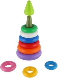 Elke ring heeft een andere kleur, wat helpt bij het herkennen van kleuren en grote differentiatie. Kinderen zullen gefascineerd zijn door de heldere kleuren en zullen veel plezier hebben bij het steeds opnieuw stapelen en demonteren van de piramide.