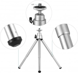Dit compacte statief is gemaakt van hoge kwaliteit aluminium, wat garant staat voor hoge duurzaamheid en sterkte van de constructie. Het is perfect voor macrofotografie door de mogelijkheid van positionering via een kop die in drie richtingen beweegt. Universele 1/4'' schroefdraad is compatibel met de meeste camera's en fototoestellen.