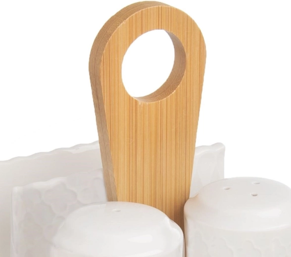 Deze 3-delige WHITELINE set combineert smaakvol design met functionaliteit voor dagelijks tafelen en feestelijke gelegenheden. Twee porseleinen strooiers voor zout en peper worden aangevuld met een servethouder, alles geplaatst op een stevige bamboe basis met praktische handgreep.
