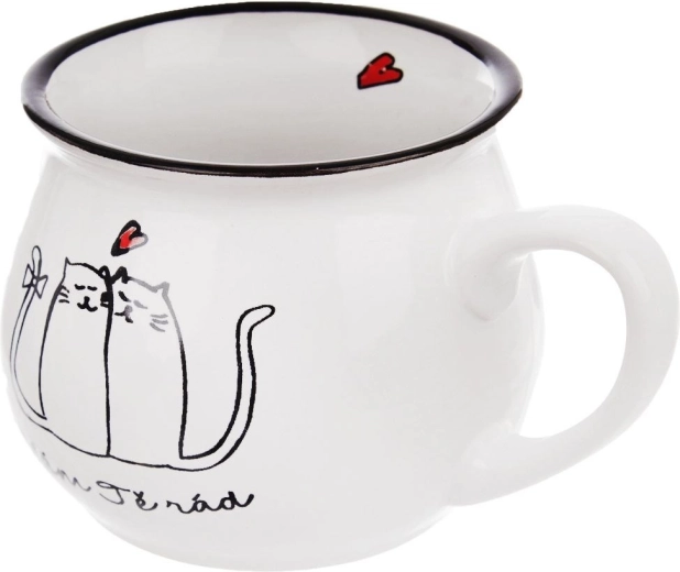 Stijlvolle keramische mok met een inhoud van 300 ml en een motief van verliefde katten. Biedt een comfortabel oor, is geschikt voor de vaatwasser en magnetron en is perfect voor koffie, thee en cacao. Hoogwaardige keramiek in het wit zorgt voor een lange levensduur en een elegante uitstraling op elke tafel.