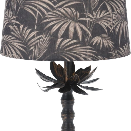 Deze zeer stijlvolle tafellamp combineert klassieke elegantie met een modern design. De zwarte textielen kap met een gouden bladpatroon creëert een aangename sfeer en wordt een opvallend decoratief element in de woonkamer, slaapkamer, studeerkamer of kantoor. De metalen voet met gepatineerde uitstraling geeft de lamp een vintage karakter en een stabiel gevoel.