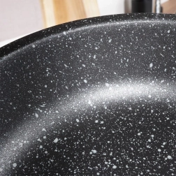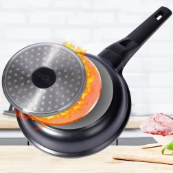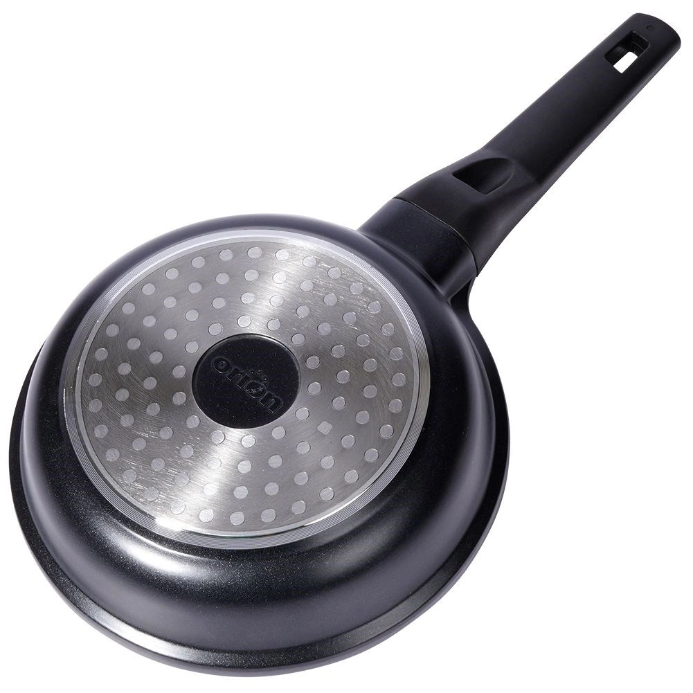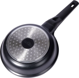 De pan is compatibel met alle soorten kookplaten – gas, elektrisch, keramisch en inductie. De gelijkmatige warmteverdeling over het hele oppervlak voorkomt aanbranden en garandeert perfecte resultaten. De ergonomische, niet-oververhittende handgreep ligt prettig in de hand en maakt hanteren eenvoudig. In de verpakking vind je ook een beschermende onderlegger voor veilig stapelen van pannen.