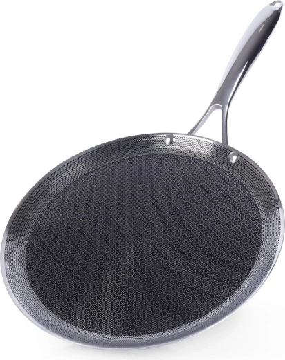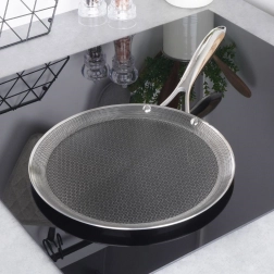 Deze rvs pannenkoekenpan uit de COOKCELL HYBRID-lijn biedt topklasse antiaanbakeigenschappen en een lange levensduur. De speciale oppervlaktestructuur zorgt voor eenvoudig loslaten van gerechten, hoge temperatuurbestendigheid en het gebruik van metalen tools.