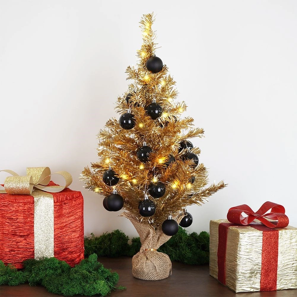 De gouden takjes weerkaatsen prachtig het licht, waardoor de boom zelfs zonder versiering al een blikvanger is. Tegelijk is hij de ideale basis voor jouw decor: hang ballen, slingers en lichtjes op en creëer een persoonlijke kerststyling.