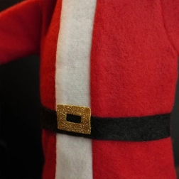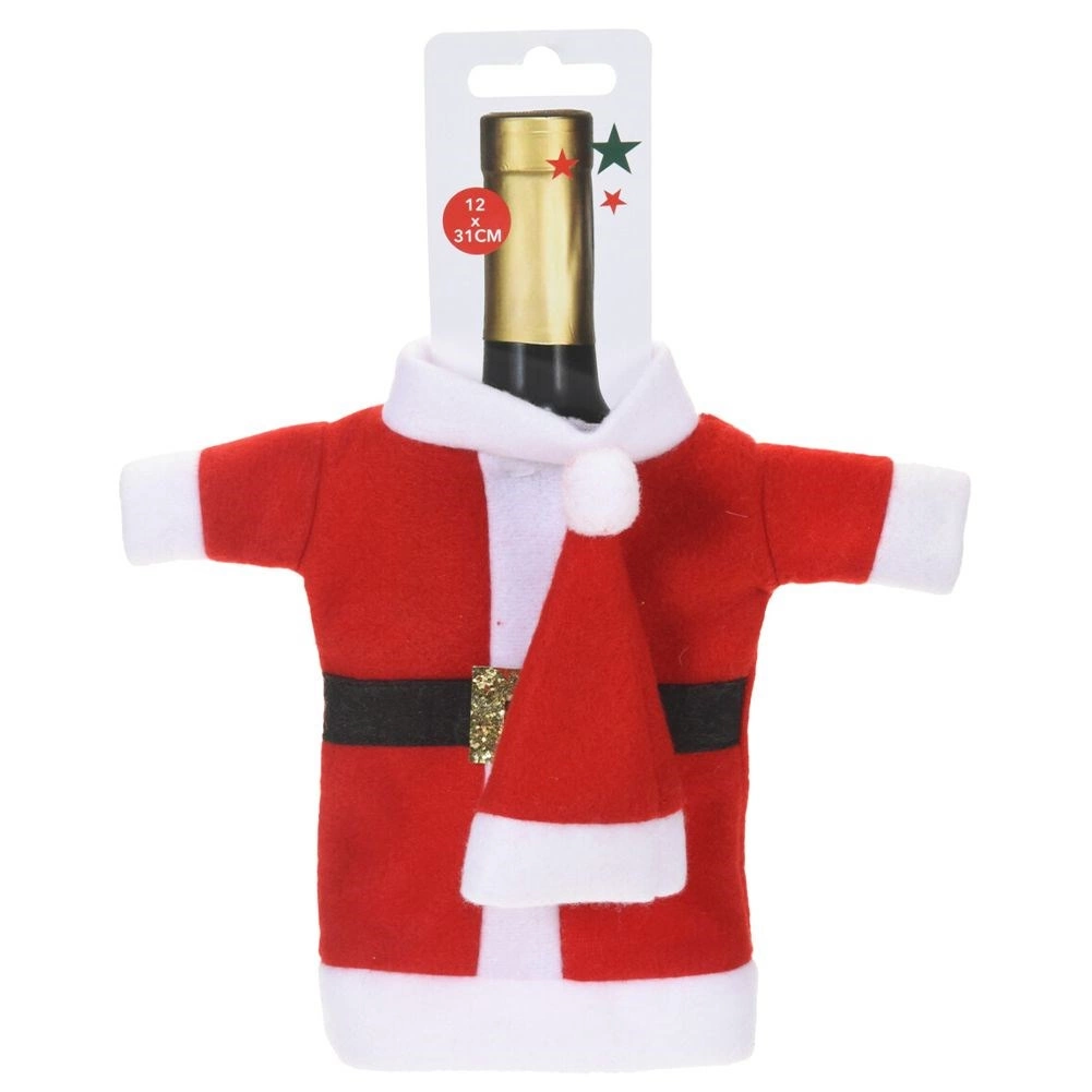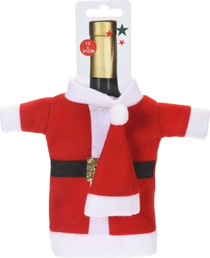Geef je cadeaus en feesttafel in een handomdraai de magie van Kerst. De textiele hoes in de look van een Santa-jas met muts schuift over de hals en het lichaam van de fles en verandert die meteen in een opvallende decoratie én cadeauverpakking. De zachte stof in rood met wit accentueert winterse motieven en past perfect bij andere kerstversieringen.