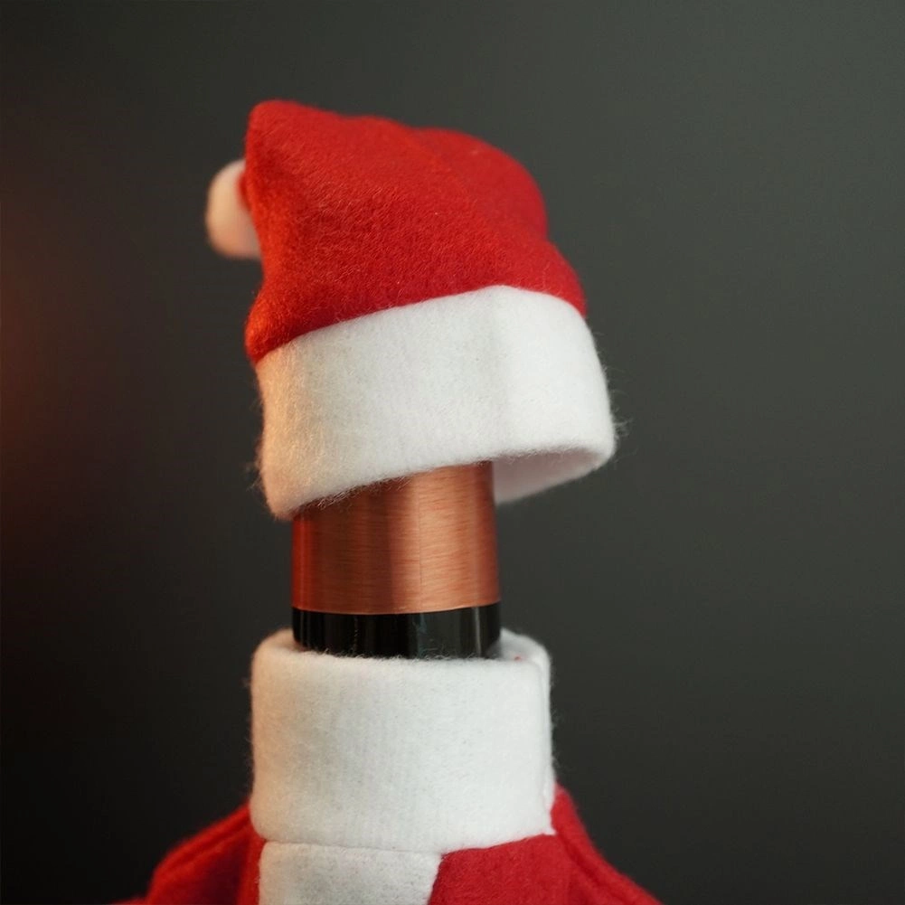 Verander een gewone fles in een feestelijke decoratie in enkele seconden. De rood-witte Santa-outfit geeft zowel de tafel als cadeaus een warme kerstsfeer.