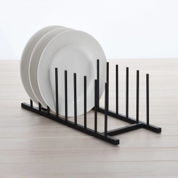 Deze universele standaard voor deksels en borden zorgt voor orde op het aanrecht, in diepe lades en in keukenkasten. Dankzij de stevige metalen constructie en de doordachte afstand tussen de spijlen houdt hij borden, deksels en snijplanken veilig en overzichtelijk.