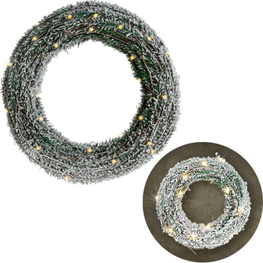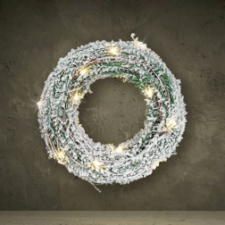Creëer een magische feestelijke sfeer met deze decoratieve krans, die besneeuwd naaldgroen natuurgetrouw imiteert en zacht straalt dankzij 30 warme LED’s. Dankzij de batterijvoeding kun je hem overal plaatsen – aan de deur, boven de haard, in het raam of op een plank – zonder zichtbare kabels en zonder ingewikkelde installatie.